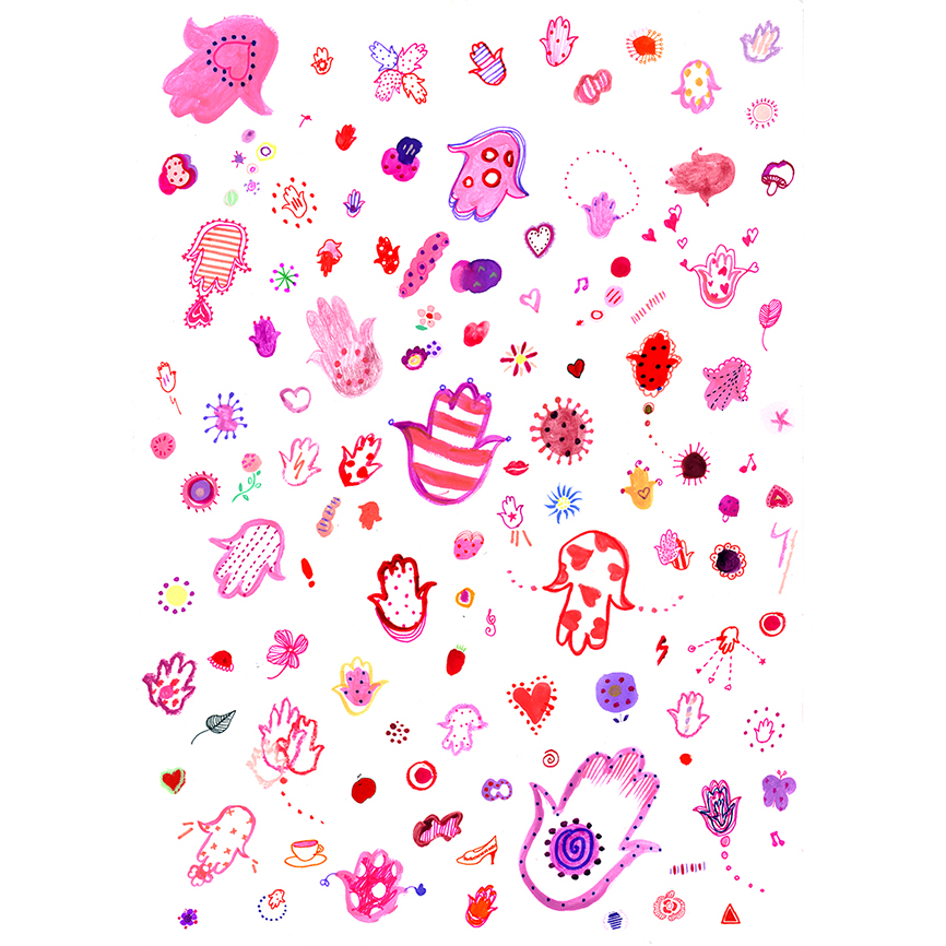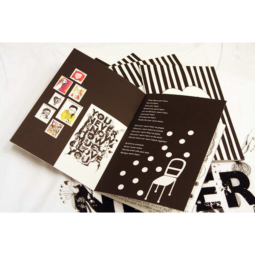 2008年春夏シーズンのアーティストTシャツ参加アーティストの一人であるSHOKOが、アニエスベー青山店、京都店ギャラリースペースにて、Tシャツの原画のほか、イラストレーション、写真、インスタレーションの展示を行いました。アニエスベーからファッシンはもちろんのこと、表現の面でも大きな影響を受けたというSHOKOが、戦争や憎しみ合いの愚かさを訴える強いメッセージをそのアートワークに表現しています。そして、作品を見る人達の中でメッセージの意味が広がり、深まる、ある種のコミュニケーションになるようにとの願いが、同展には込められています。☆SHOKO for agnès b.「Feel the Warm Heart」展では、SHOKOによるドローイング、フォトグラフィー、インスタレーション等の表現の組み合わせにより、「Feel the Warm Heart」というひとつのコンセプト/メッセージの空間を創りあげました。